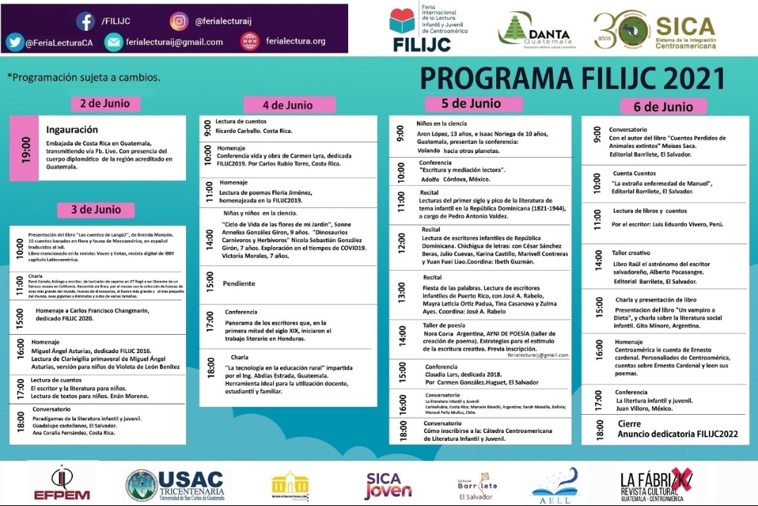 La Asociación Artística, Cultural y Educativa, Danta Guatemala, presenta la VI Feria Internacional de la Lectura Infantil y Juvenil de Centroamérica, FILIJC, dedicada al Bicentenario de Centroamérica, y a los 30 años del SICA.